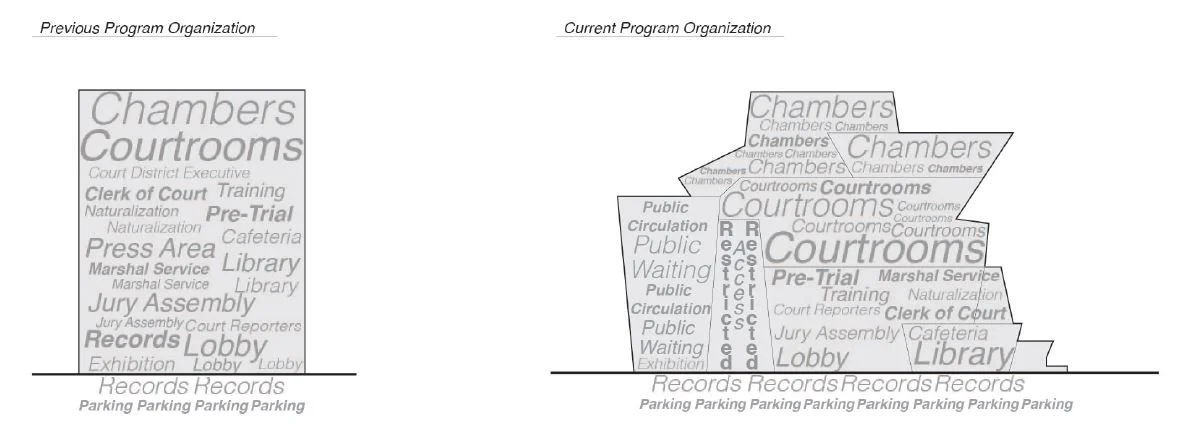 The programmatic relationships, formal characteristics, and site considerations help to define a new typology of municipal buildings that can then be applied throughout the city and country to reform the way we view our community service sector. These strategies hope to reform the public accessibility of the judicial system in a manner that not only functions as a district courthouse, but also as the informational bridge between two abutting neighborhoods.